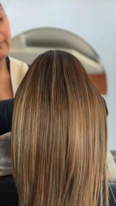 Mechas suaves que iluminan tu rostro con un acabado natural y sofisticado.