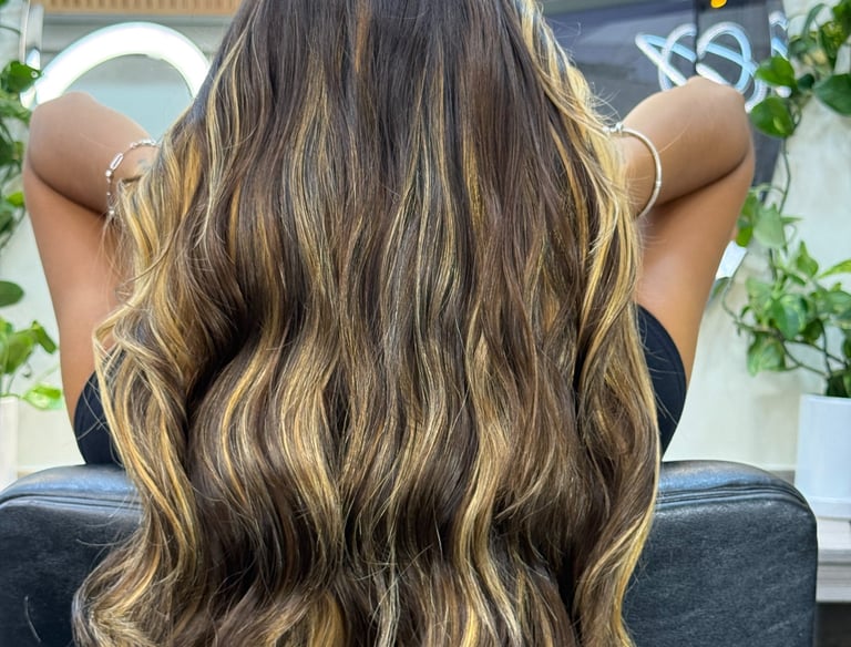 Mechas y balayage que iluminan tu cabello con un toque delicado y natural.